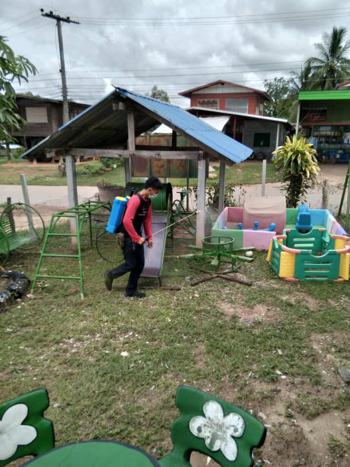ออกพ่นยาฆ่าเชื้อศูนยพัฒนาเด็กเล็กทั้ง ๑๒ ศูนย์ เพื่อเตรียมการเปิดการการสอน