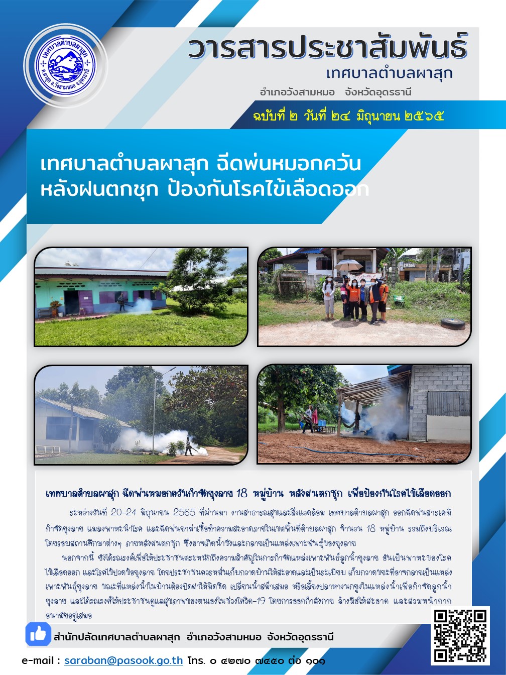 ฉีดพ่นหมอกควันหลังฝนตกชุก ป้องกันโรคไข้เลือดออก [27 มิถุนายน 2565]