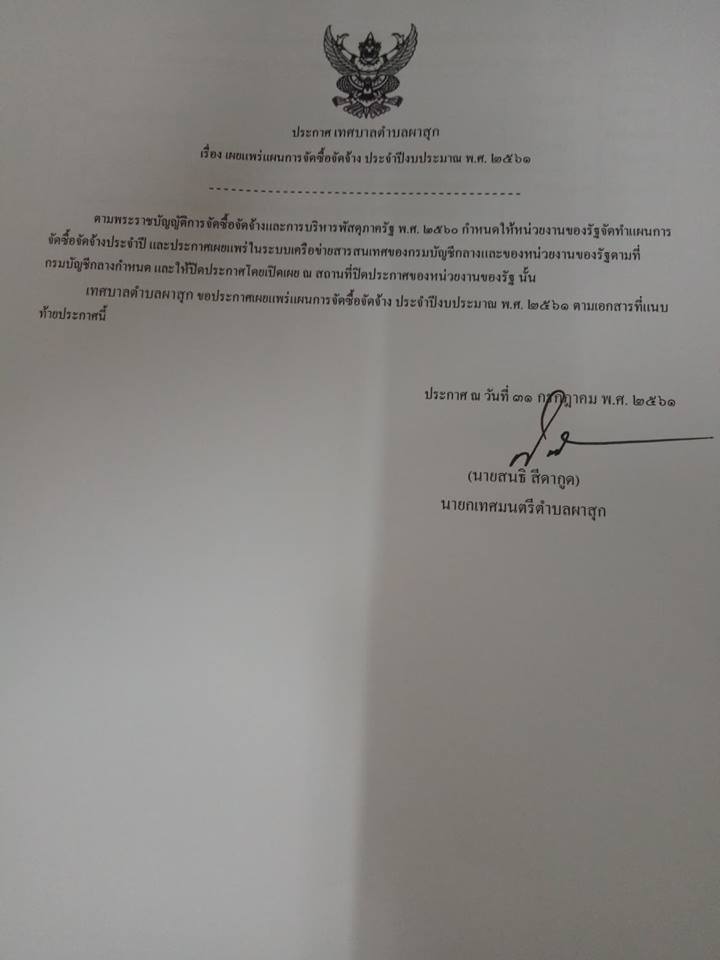 เผยแพร่แผนการจัดซื้อจัดจ้าง ประจำปีงบประมาณ พ.ศ. ๒๕๖๑