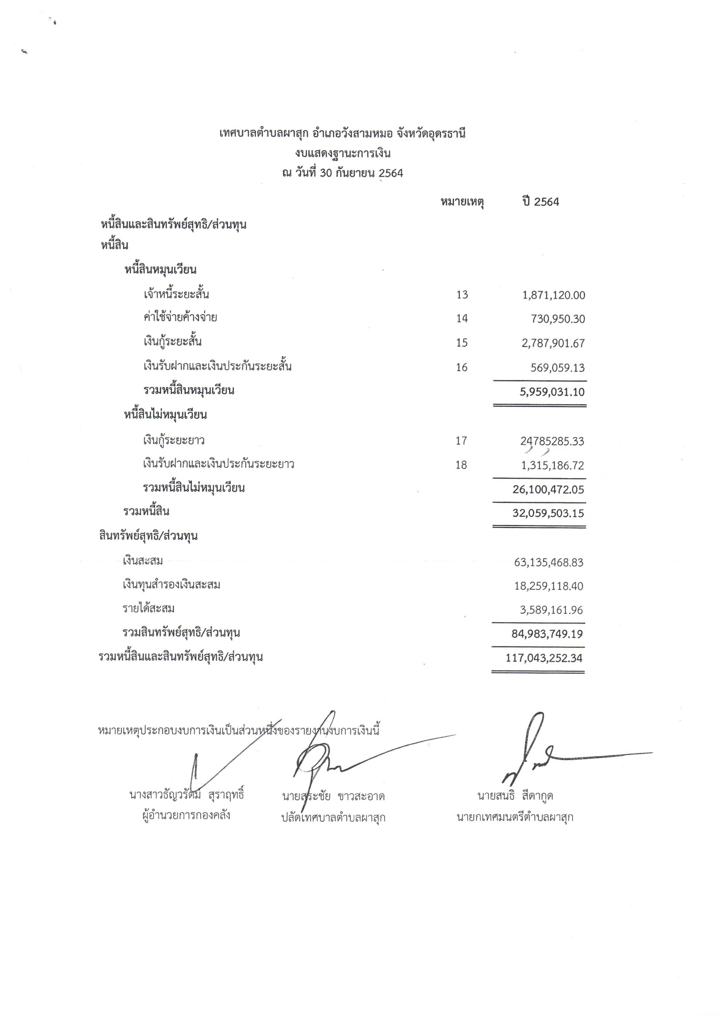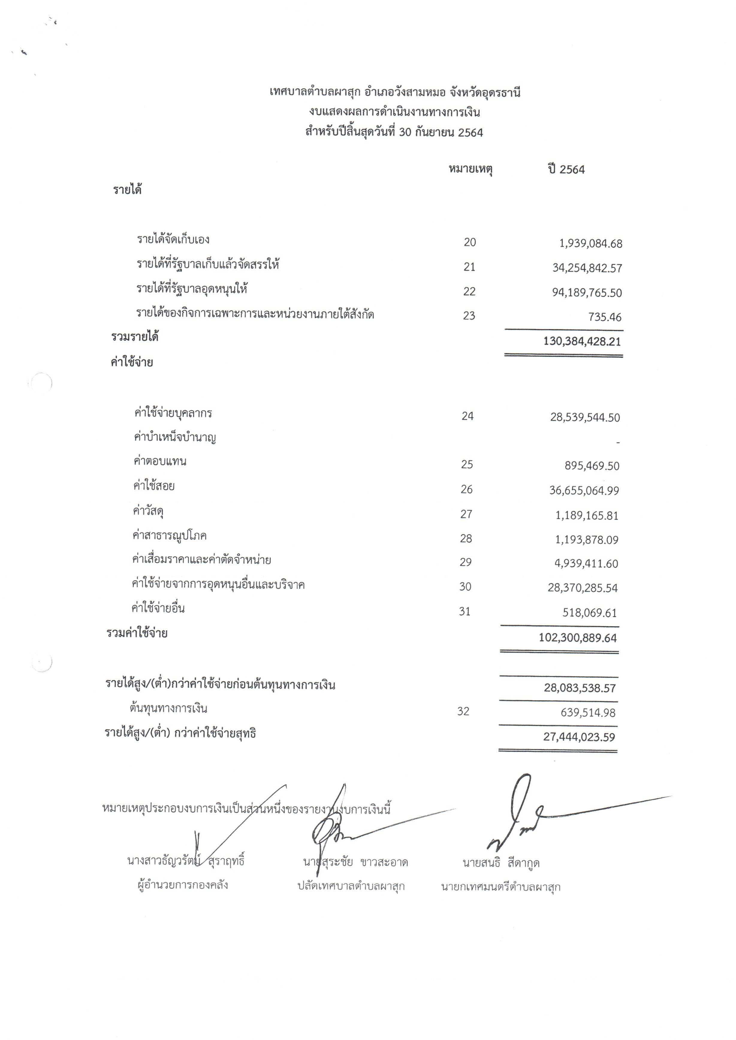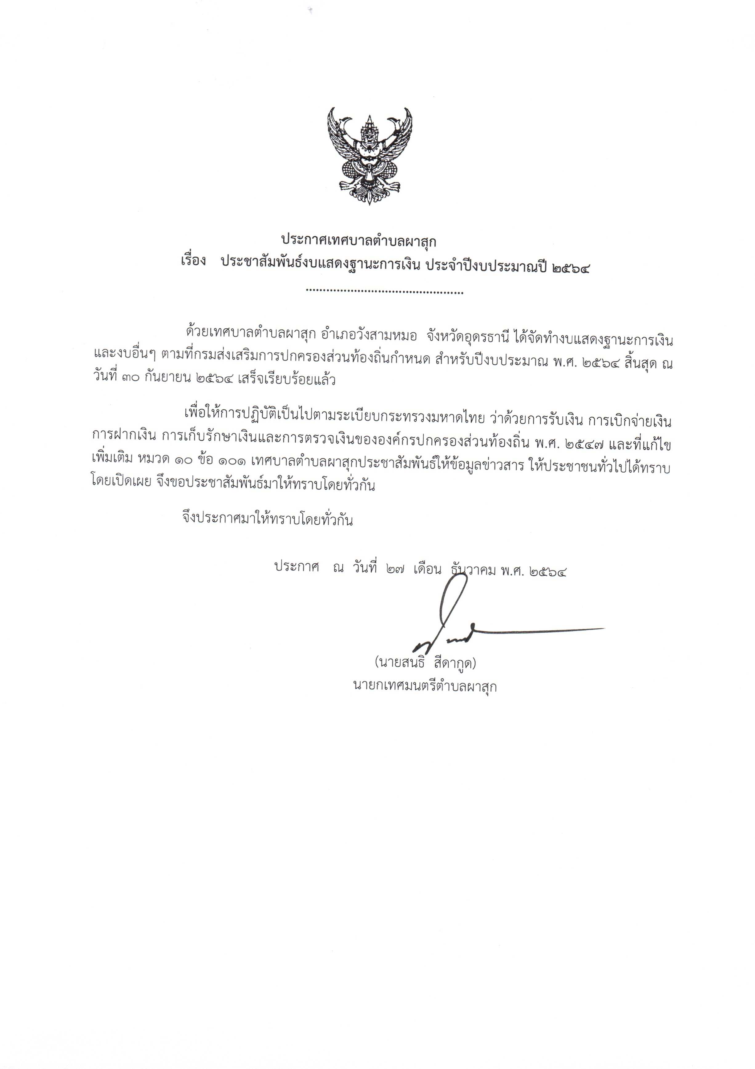 ประกาศ เรื่อง ประชาสัมพันธ์งบแสดงฐานะการเงิน ประจำปีงบประมาณปี ๒๕๖๔