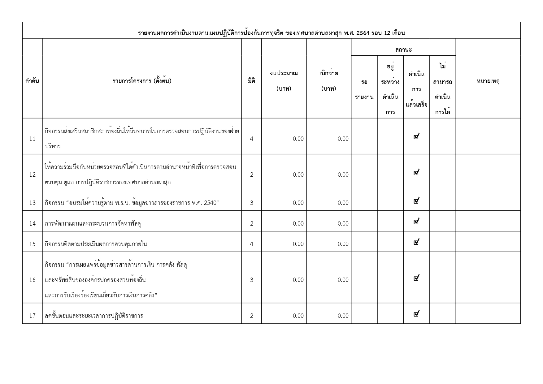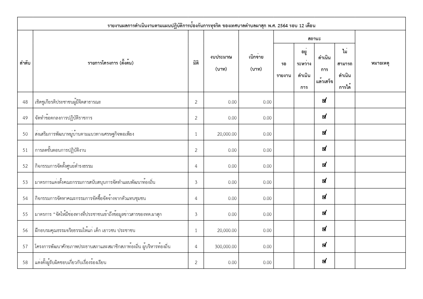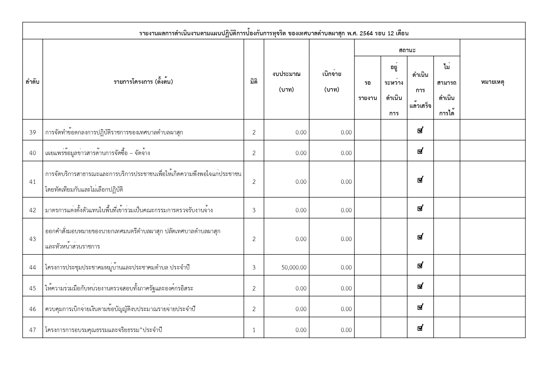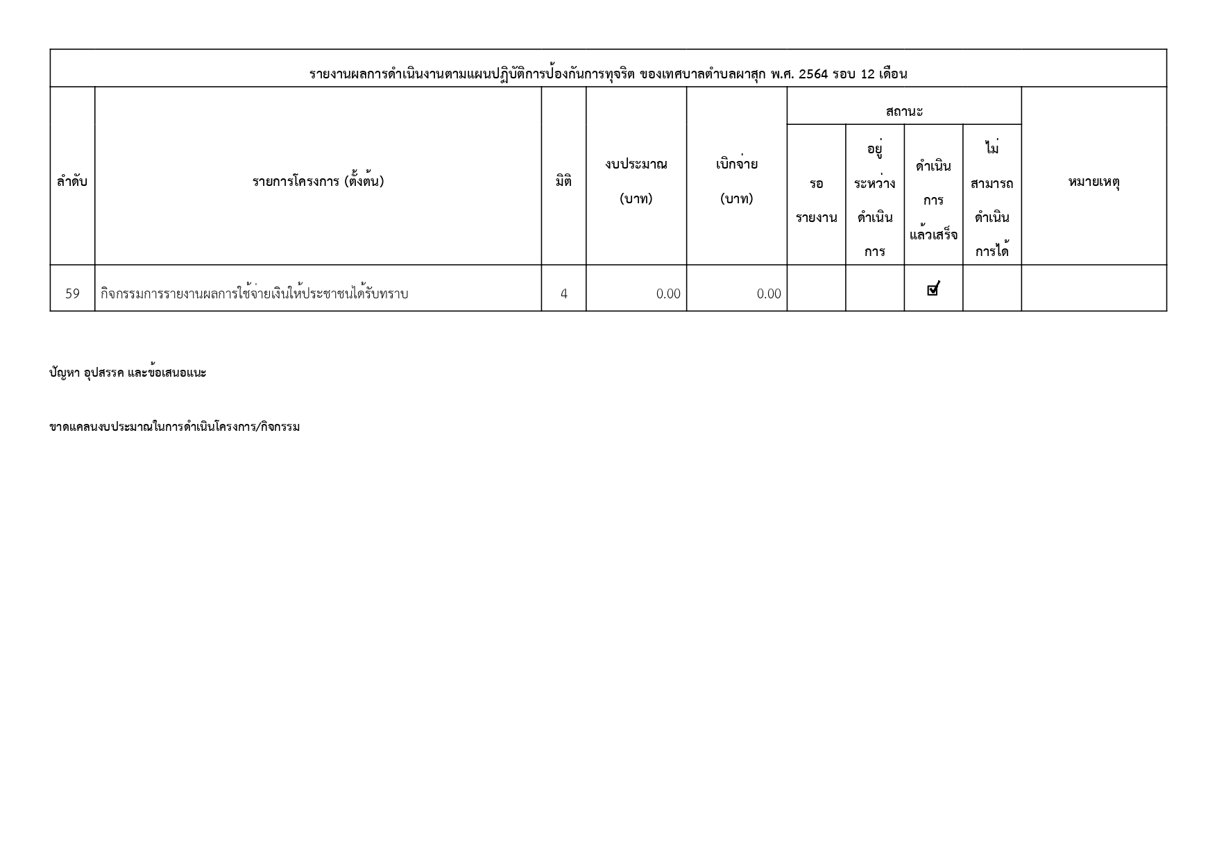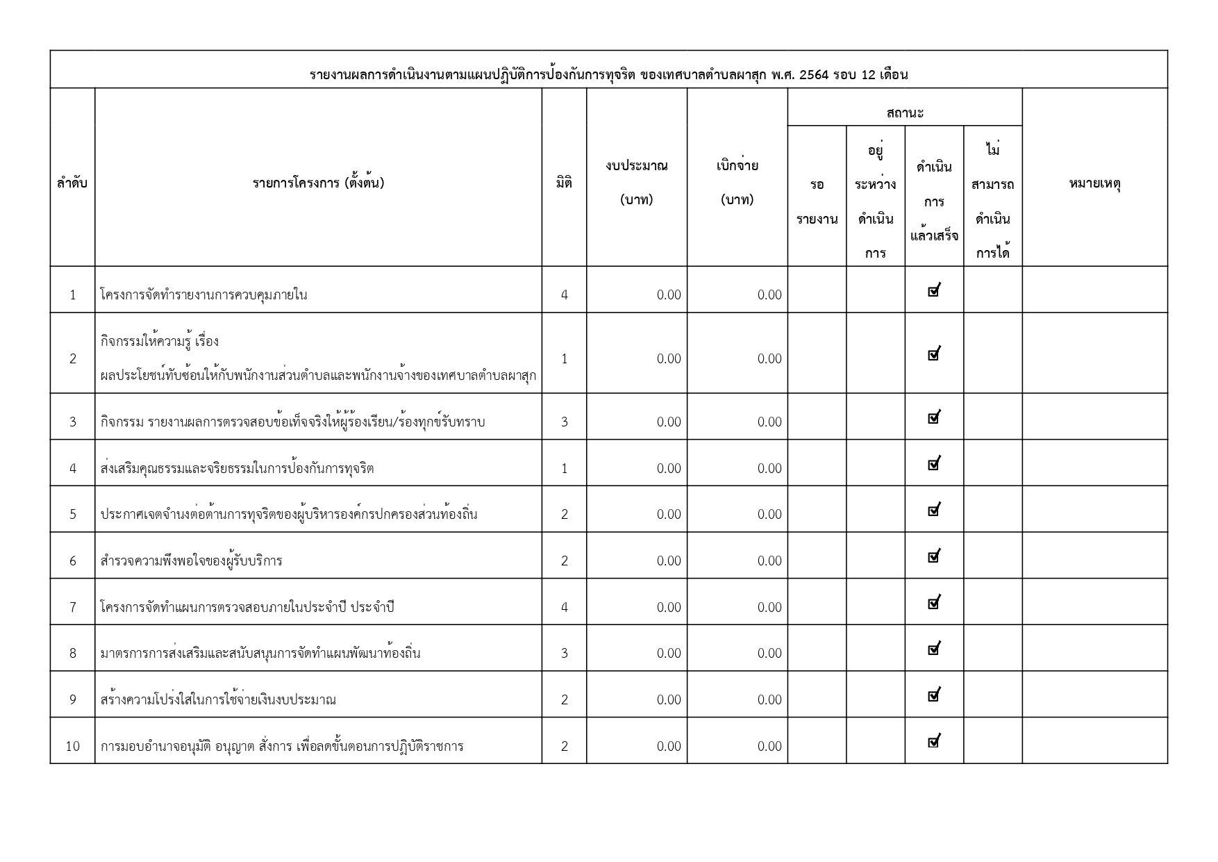 เรื่อง รายงานผลการดำเนินการป้องกันการทุจริตประจำปี พ.ศ. 2564