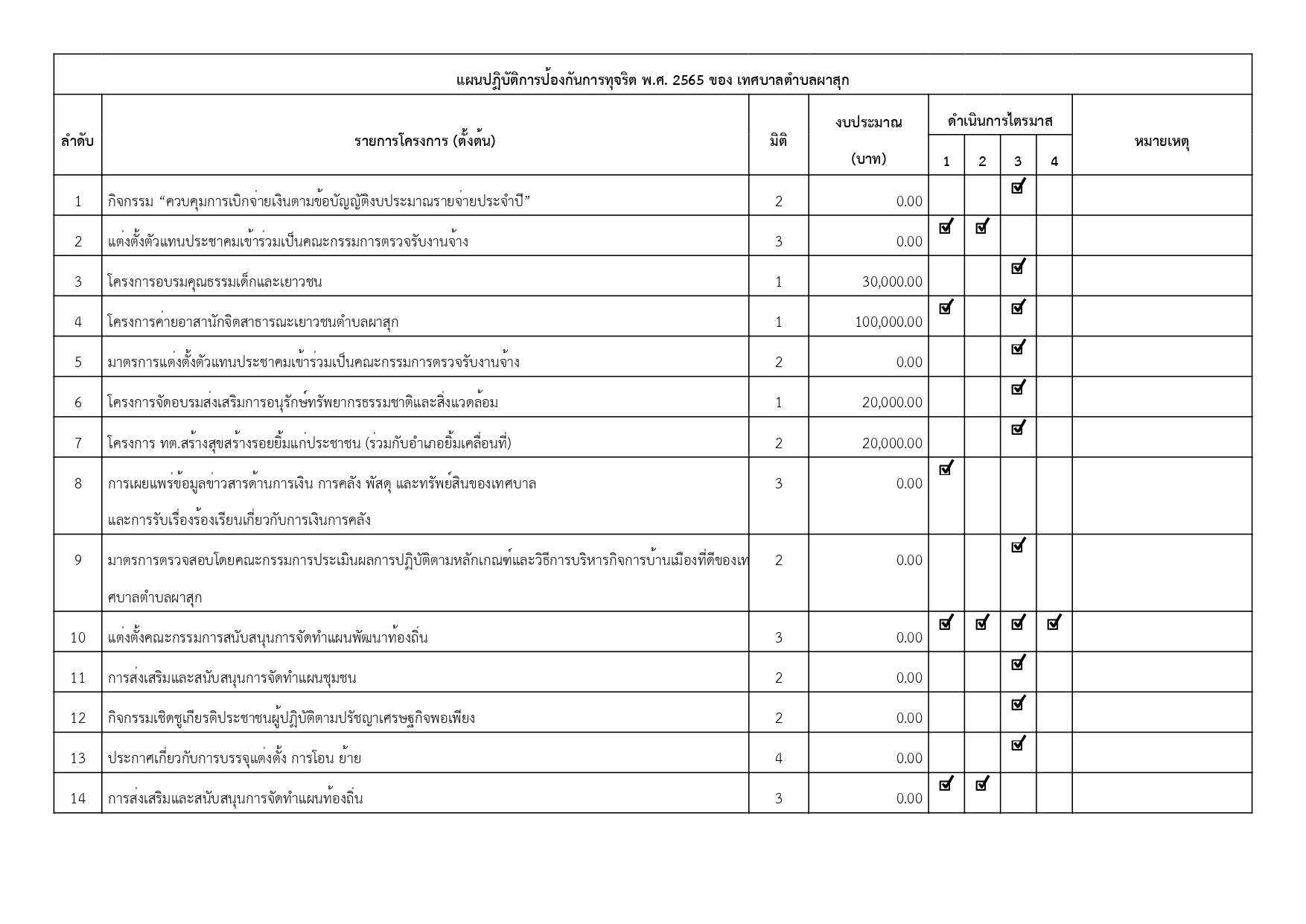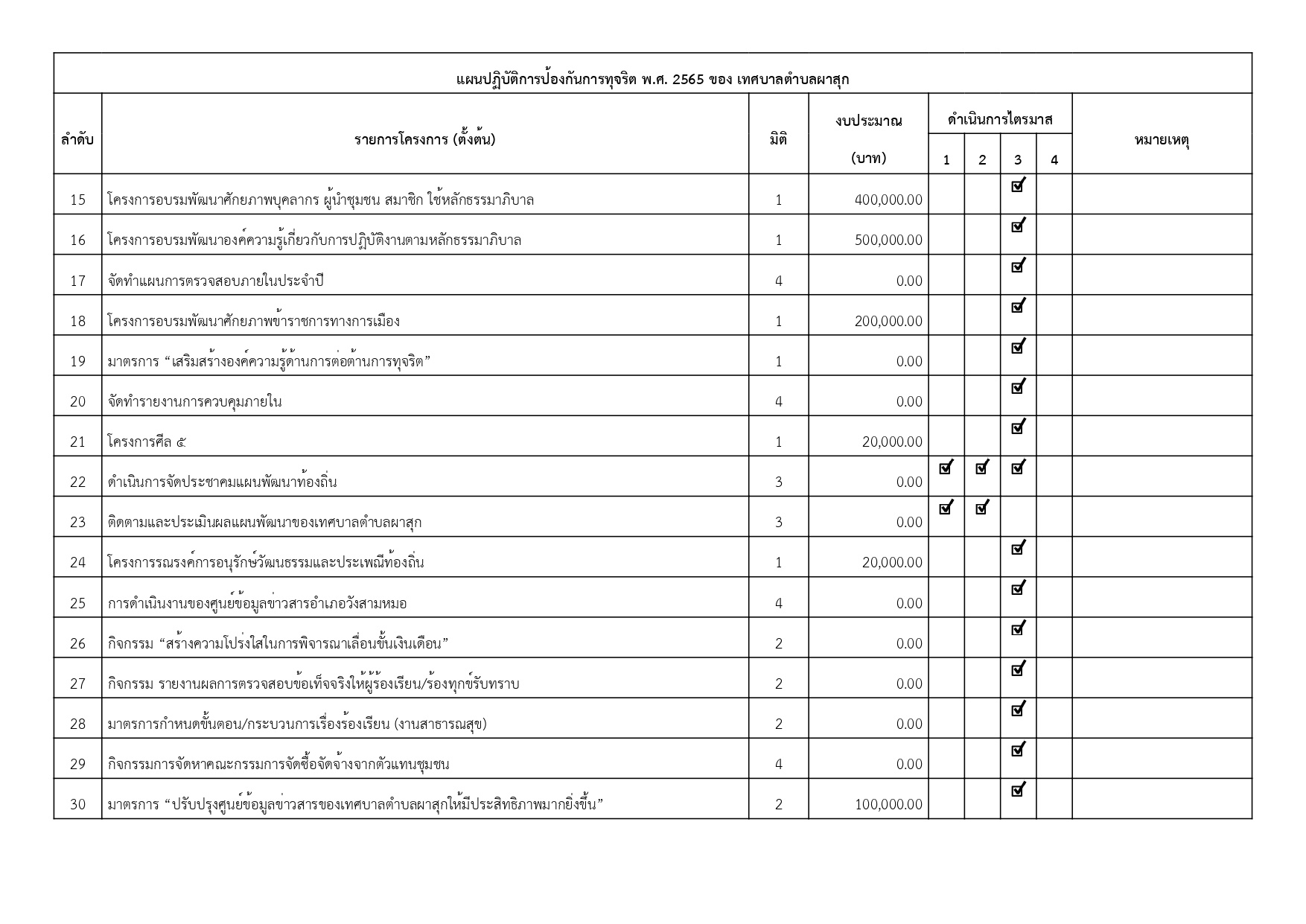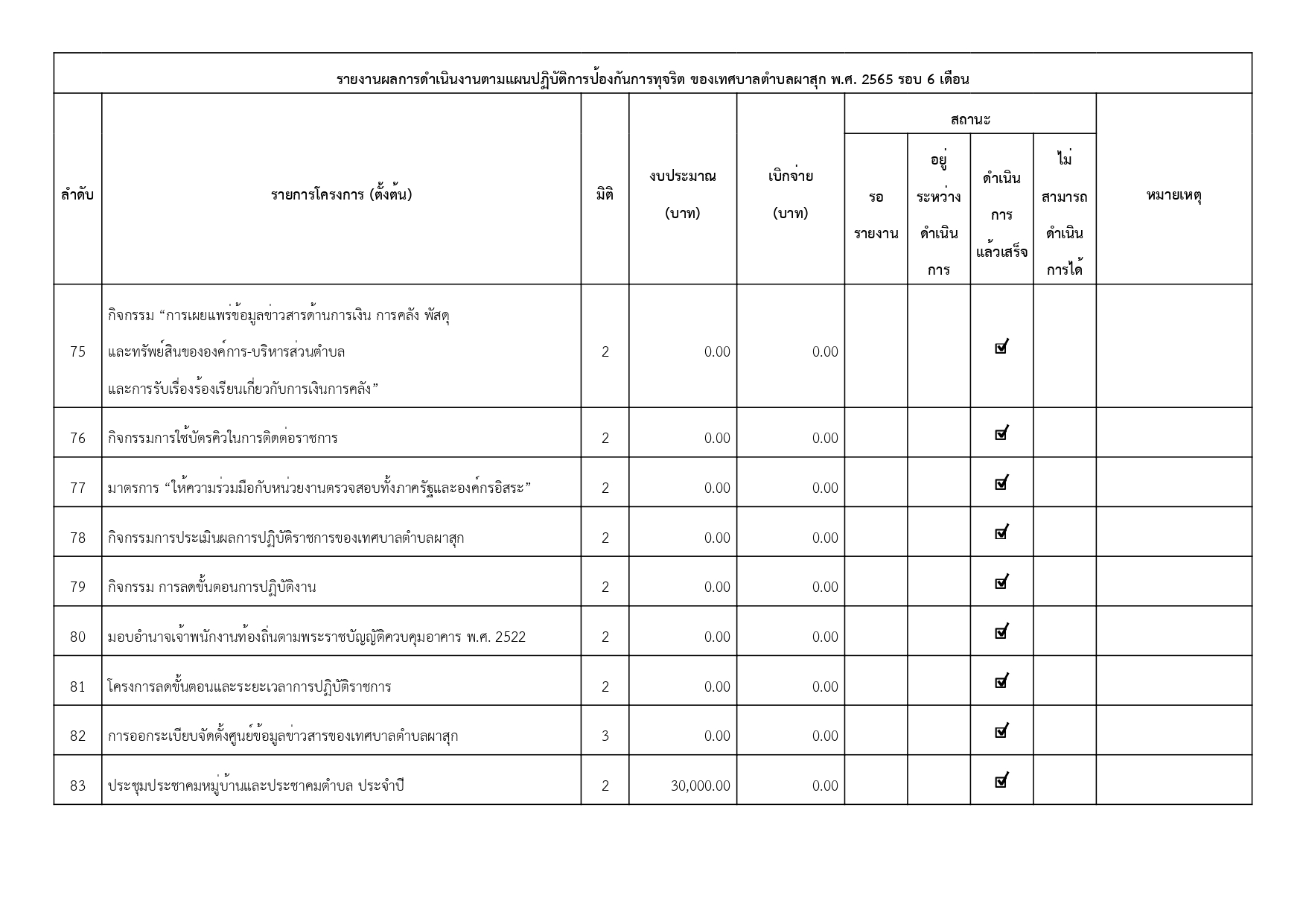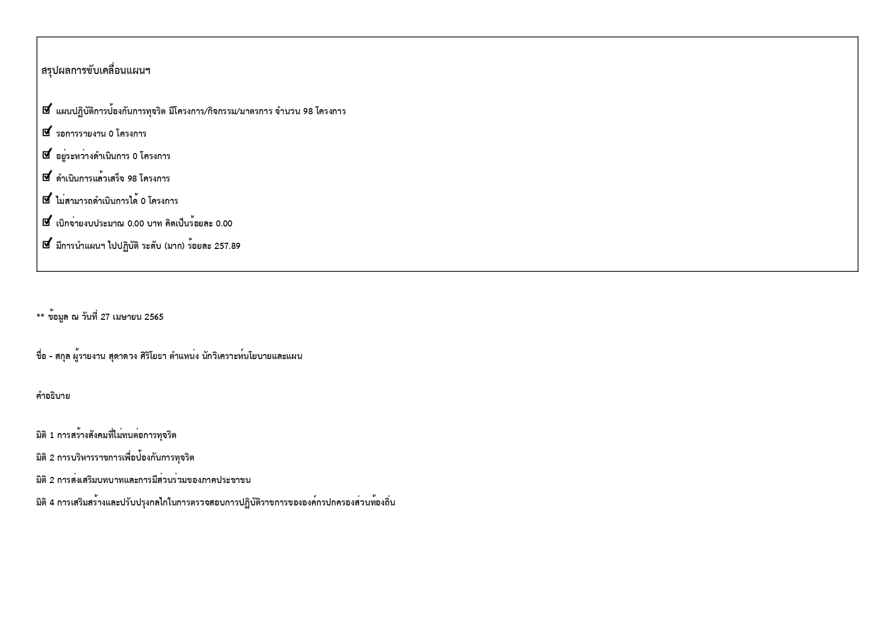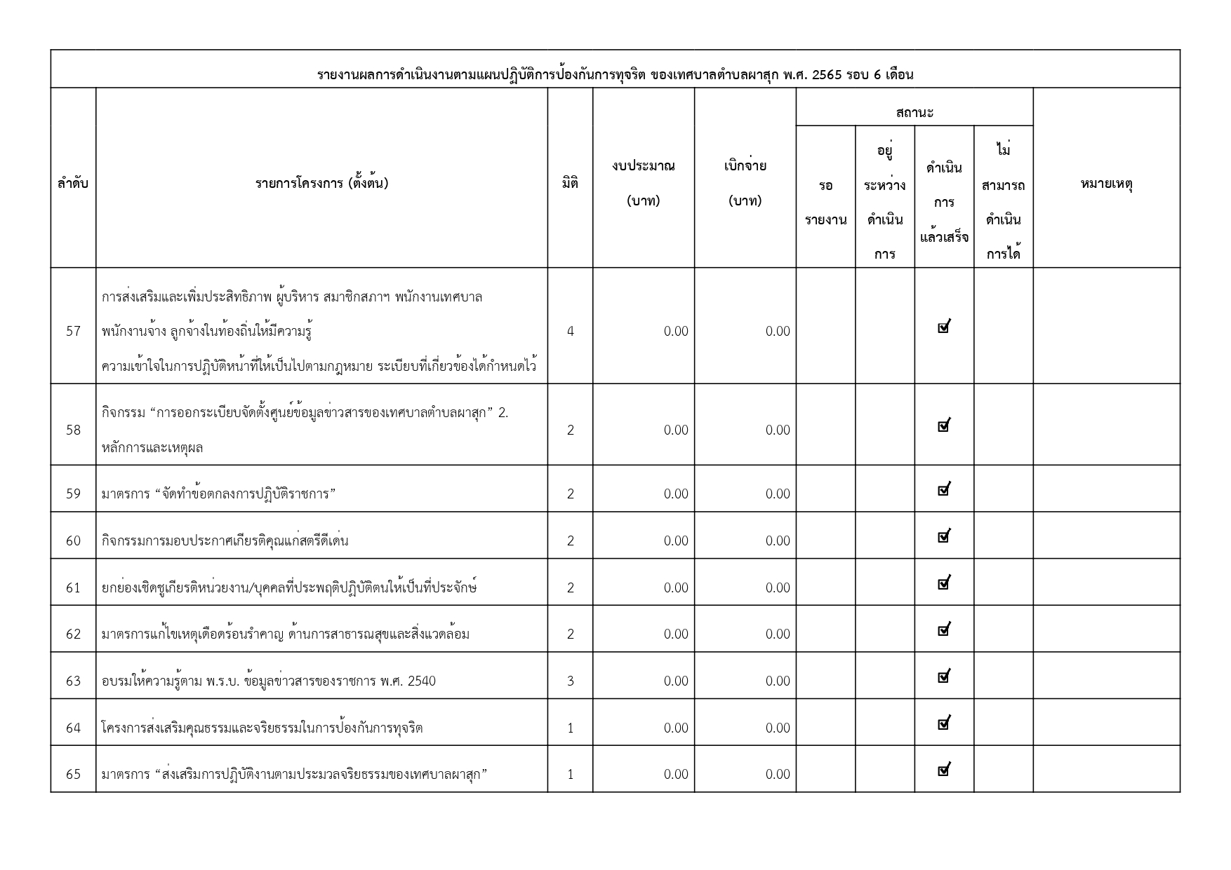 รายงานแผนปฏิบัติการป้องกันการทุจริต พ.ศ. 2565 รอบ 6 เดือน