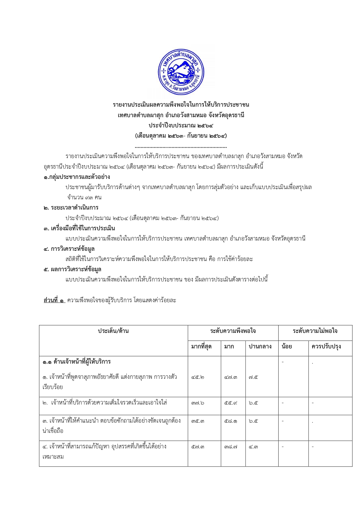 รายงานประเมินผลความพึงพอใจในการให้บริการประชาชน ประจำปีงบประมาณ 2564