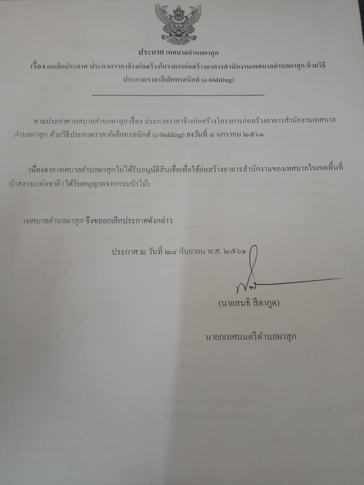 ยกเลิกประกาศรายชื่อผู้ชนะการเสนอราคา
