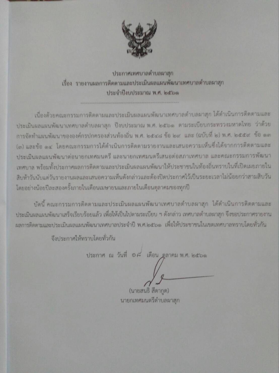 รายงานการติดตามและประเมินผลแผนพัฒนา รอบ 12 เดือน ปี2561