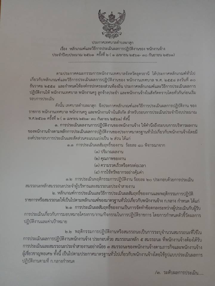 หลักเกณฑ์และวิธีการประเมินผลการปฏิบัติงานของ พนักงานจ้าง ครั้งที่ 2 ลาสุด