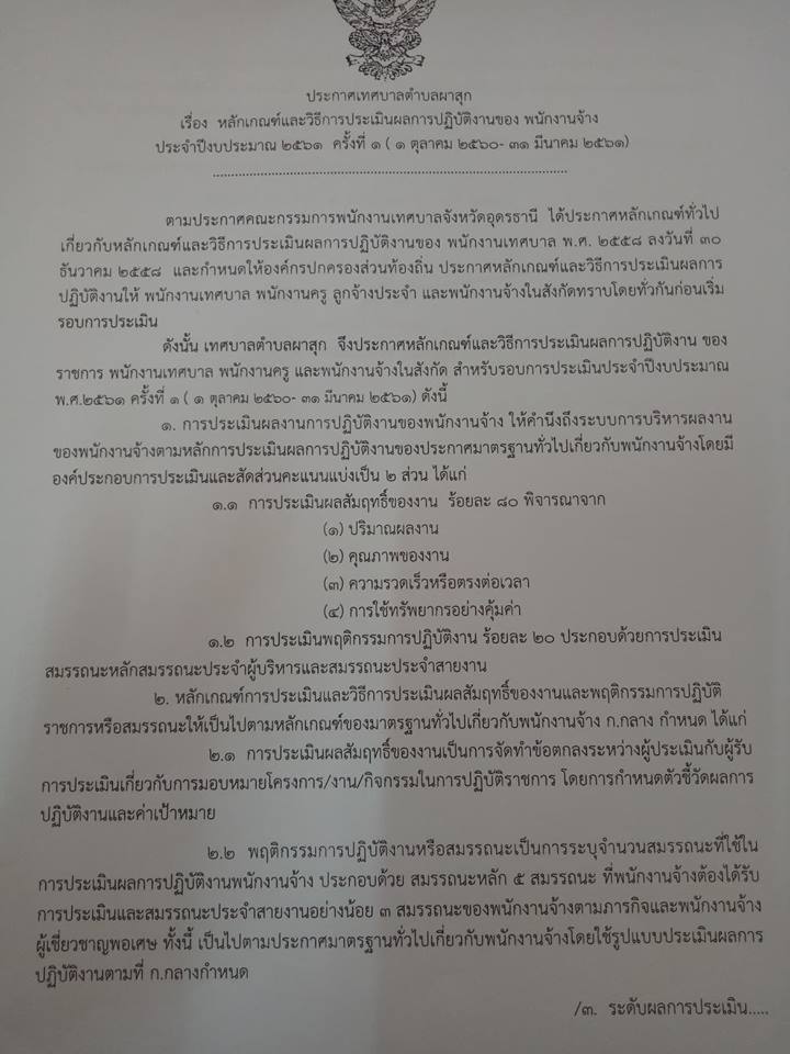 หลักเกณฑ์และวิธีการประเมินผลการปฏิบัติงานของ พนักงานจ้างประจำปีงบประมา....