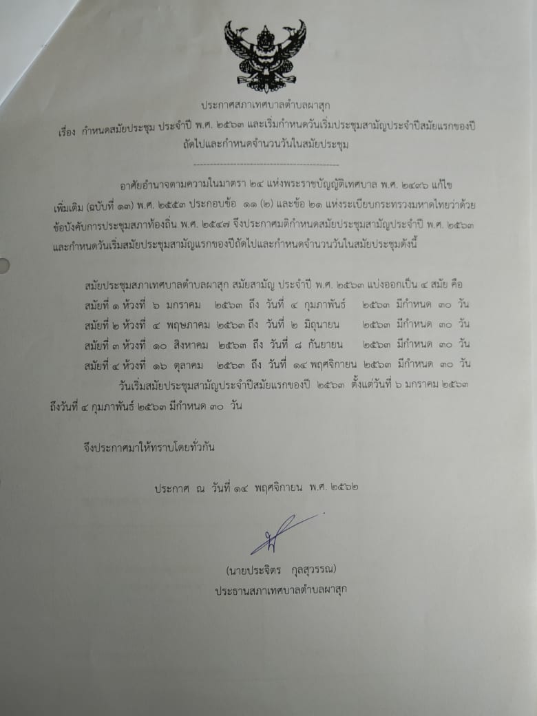 ประกาศ เรื่อง กำหนดสมัยประชุม ประจำปี พ.ศ. ๒๕๖๓