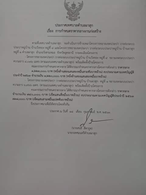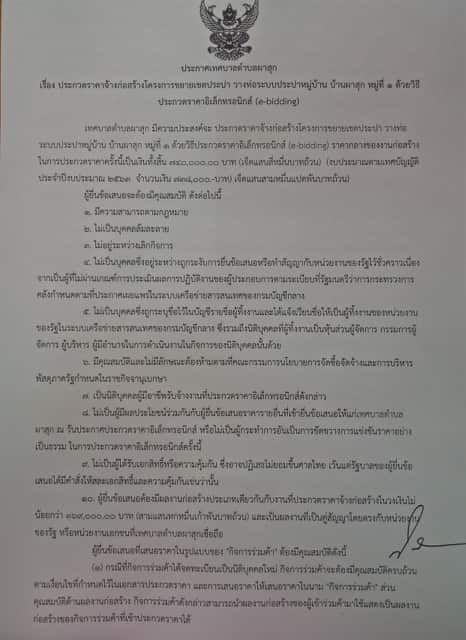 ประกวดราคาจ้างก่อสร้างโครงการขยายเขตประปา วางท่อระบบประปาหมู่บ้าน บ้าน....