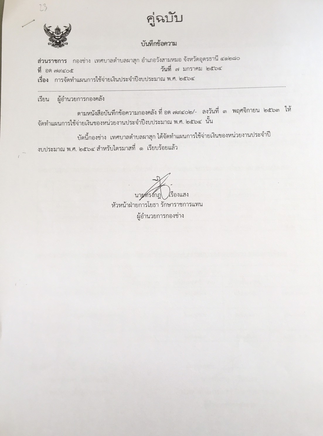 แผนการจัดซื้อจัดจ้างหรือการจัดหาพัสดุ ปี พ.ศ. 2564