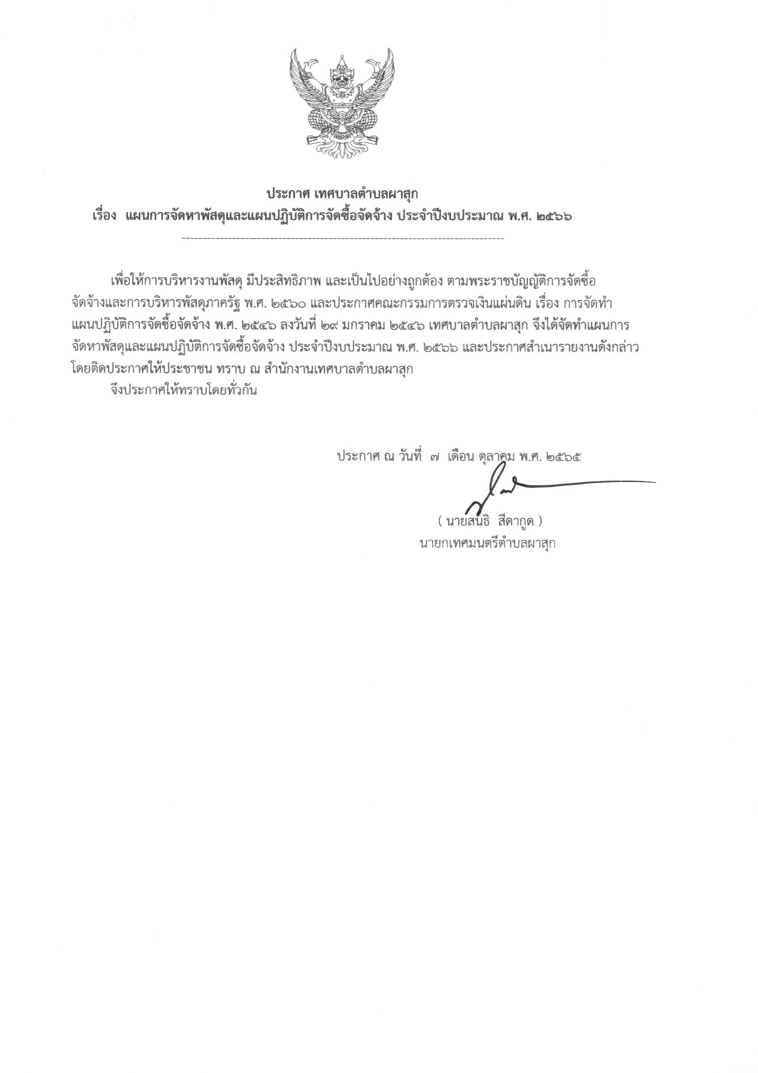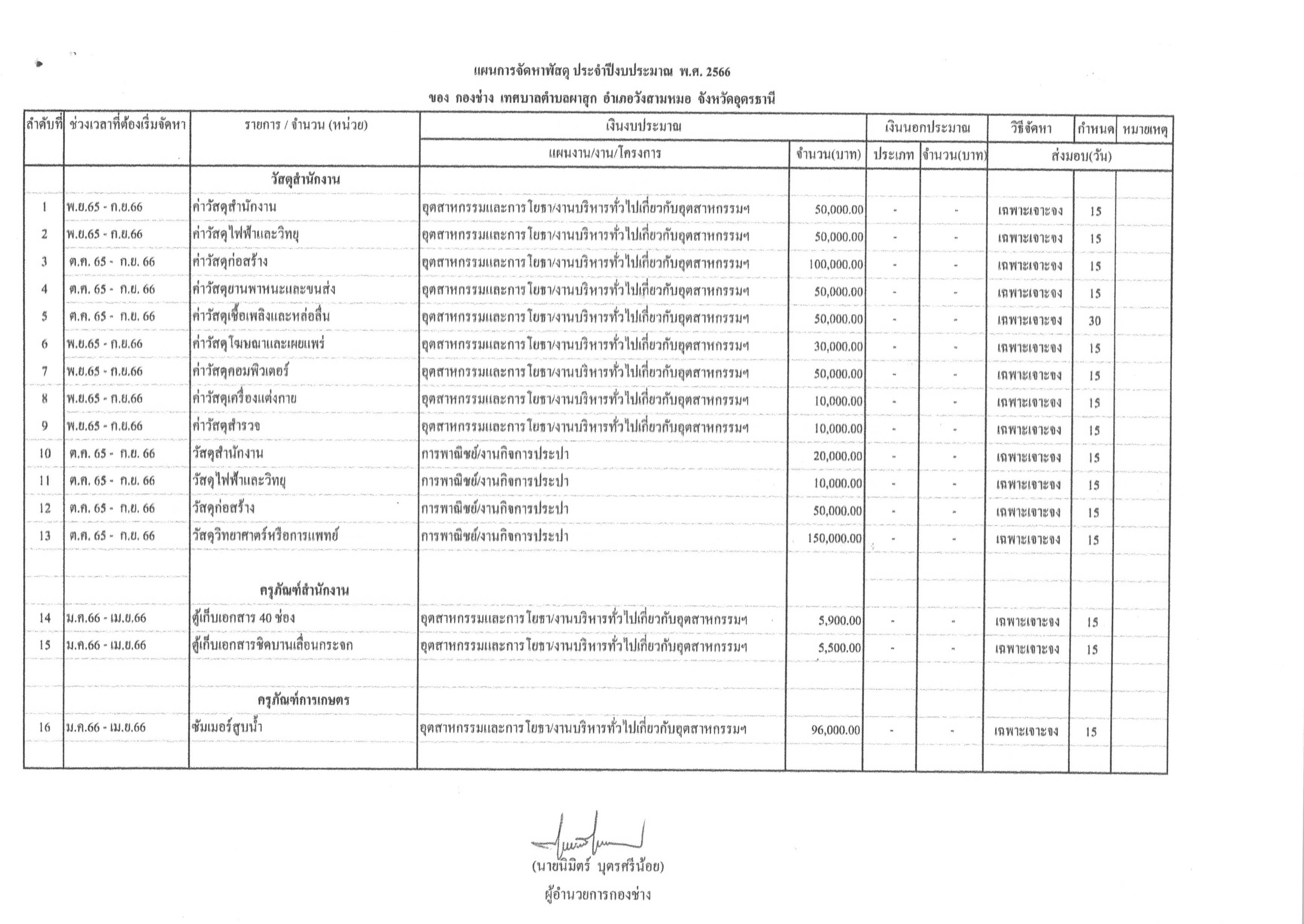 แผนการจัดซื้อจัดจ้างหรือแผนการจัดหาพัสดุ ปี พ.ศ. 2566