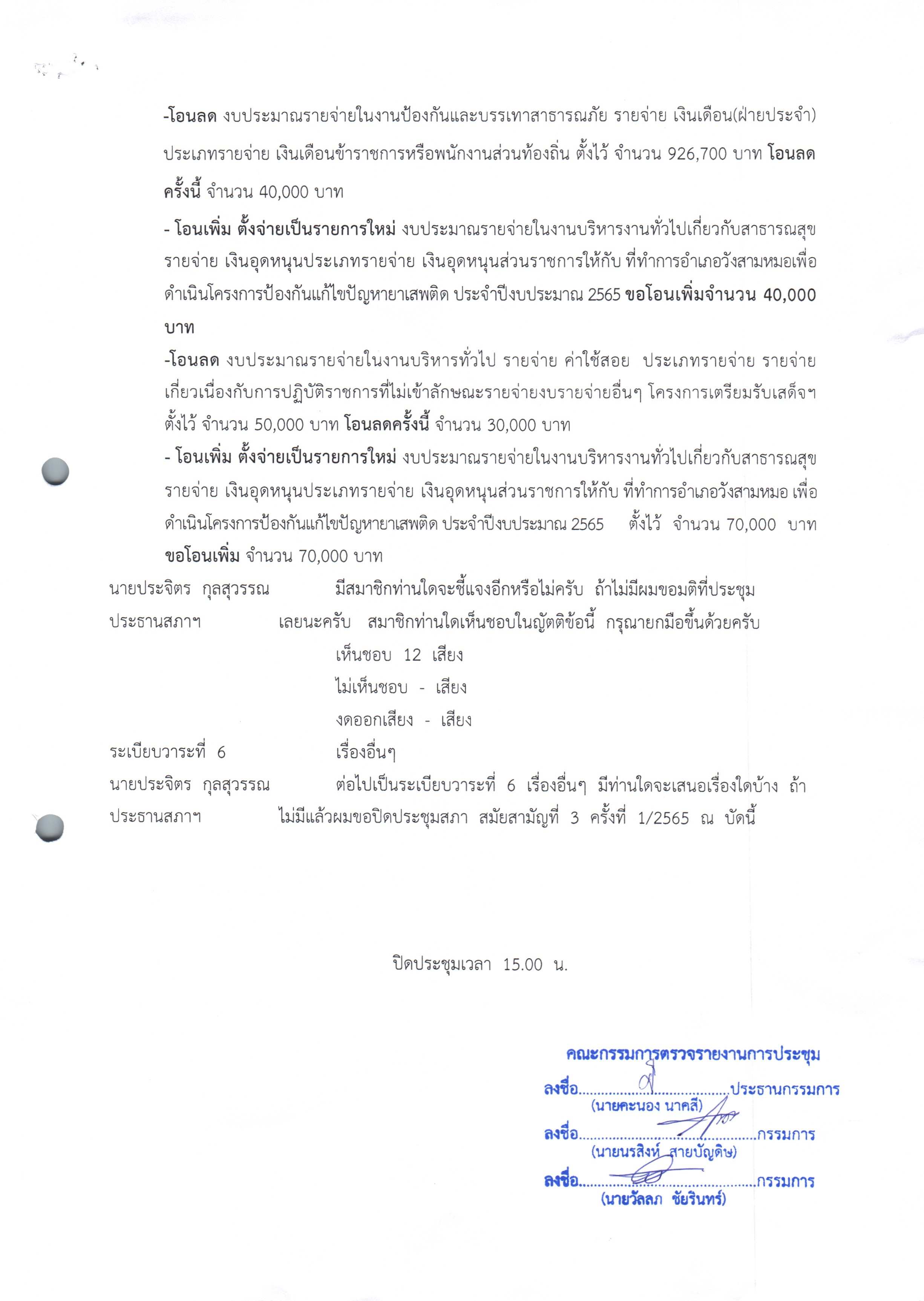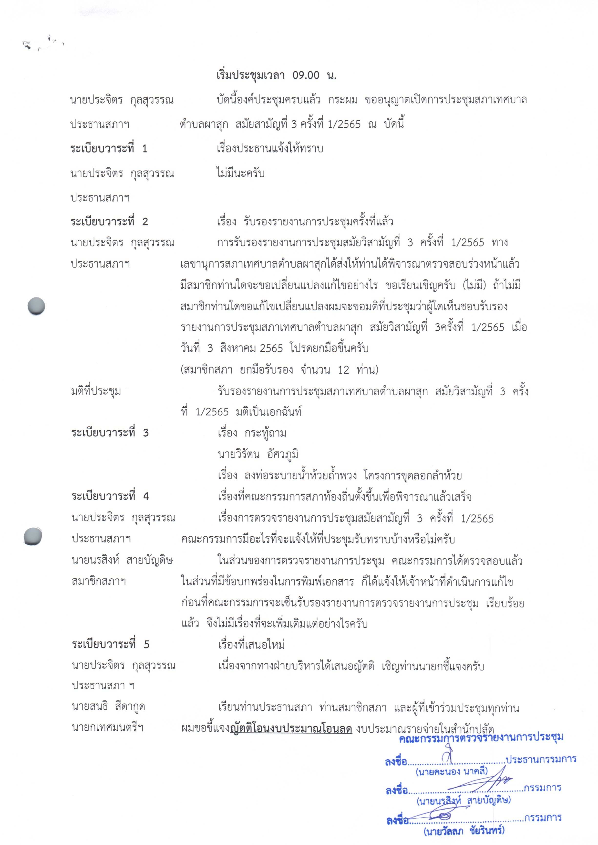 รายงานการประชุมสภา สมัยสามัญที่ 3 ครั้งที่ 1/2565