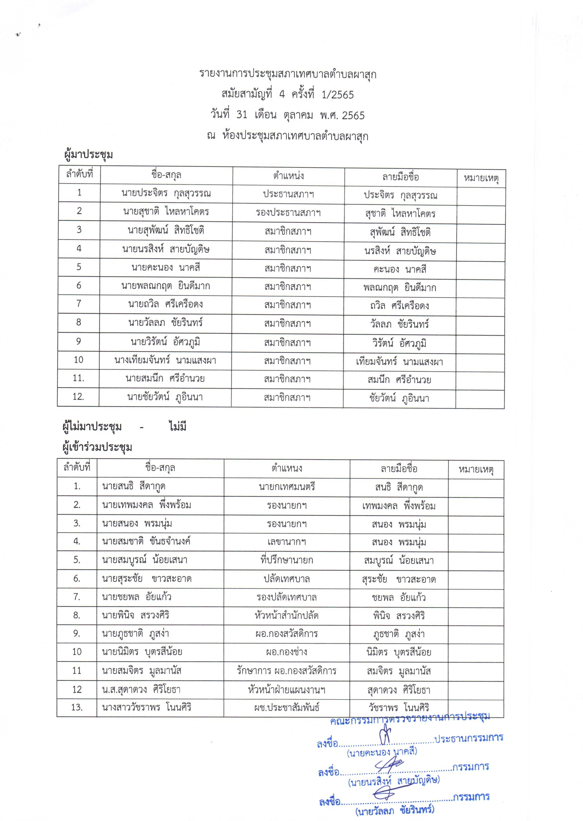 รายงานการประชุมสภา สมัยสามัญที่ 4 ครั้งที่ 1/2565