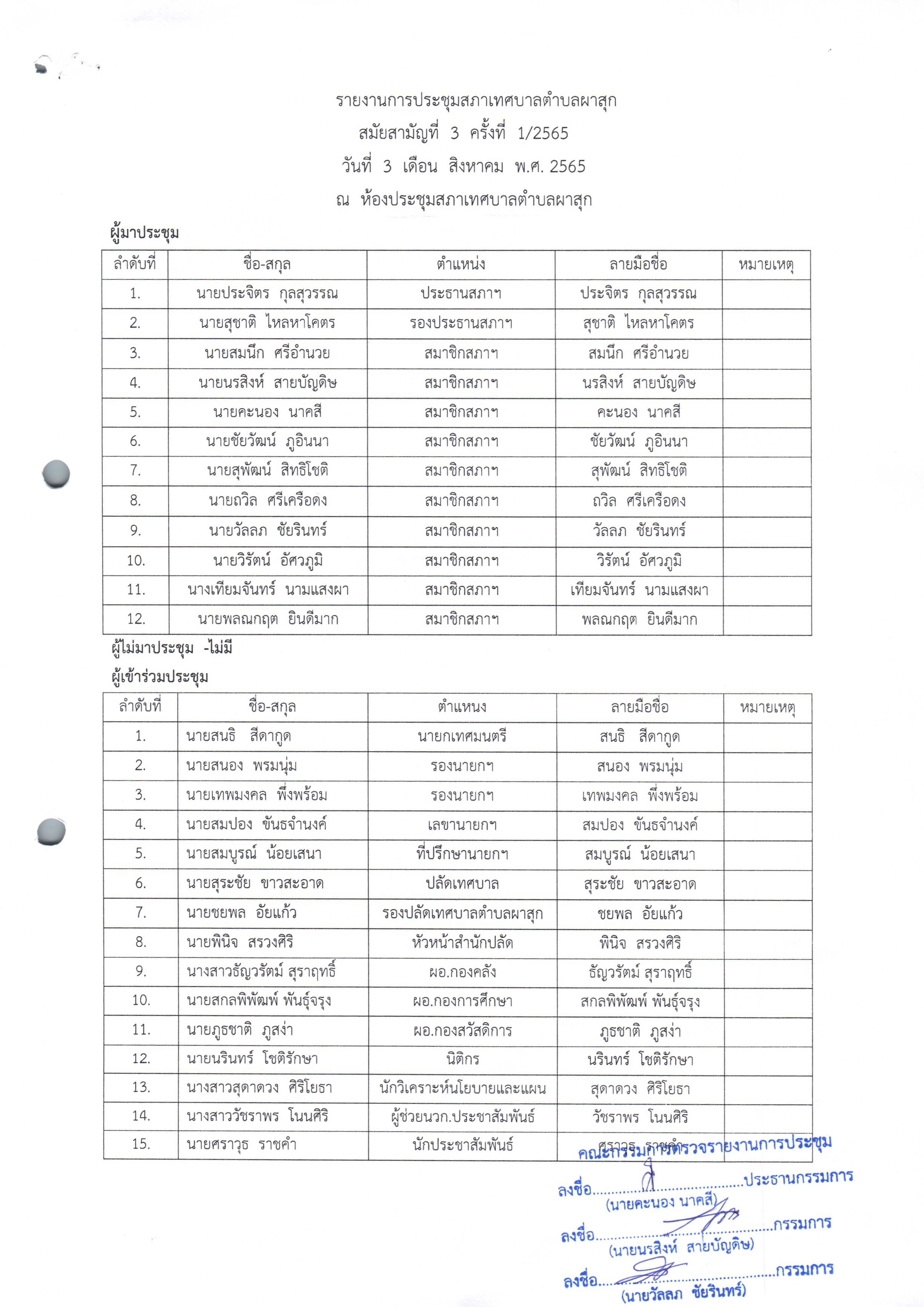 รายงานการประชุมสภา สมัยสามัญที่ 3 ครั้งที่ 1/2565
