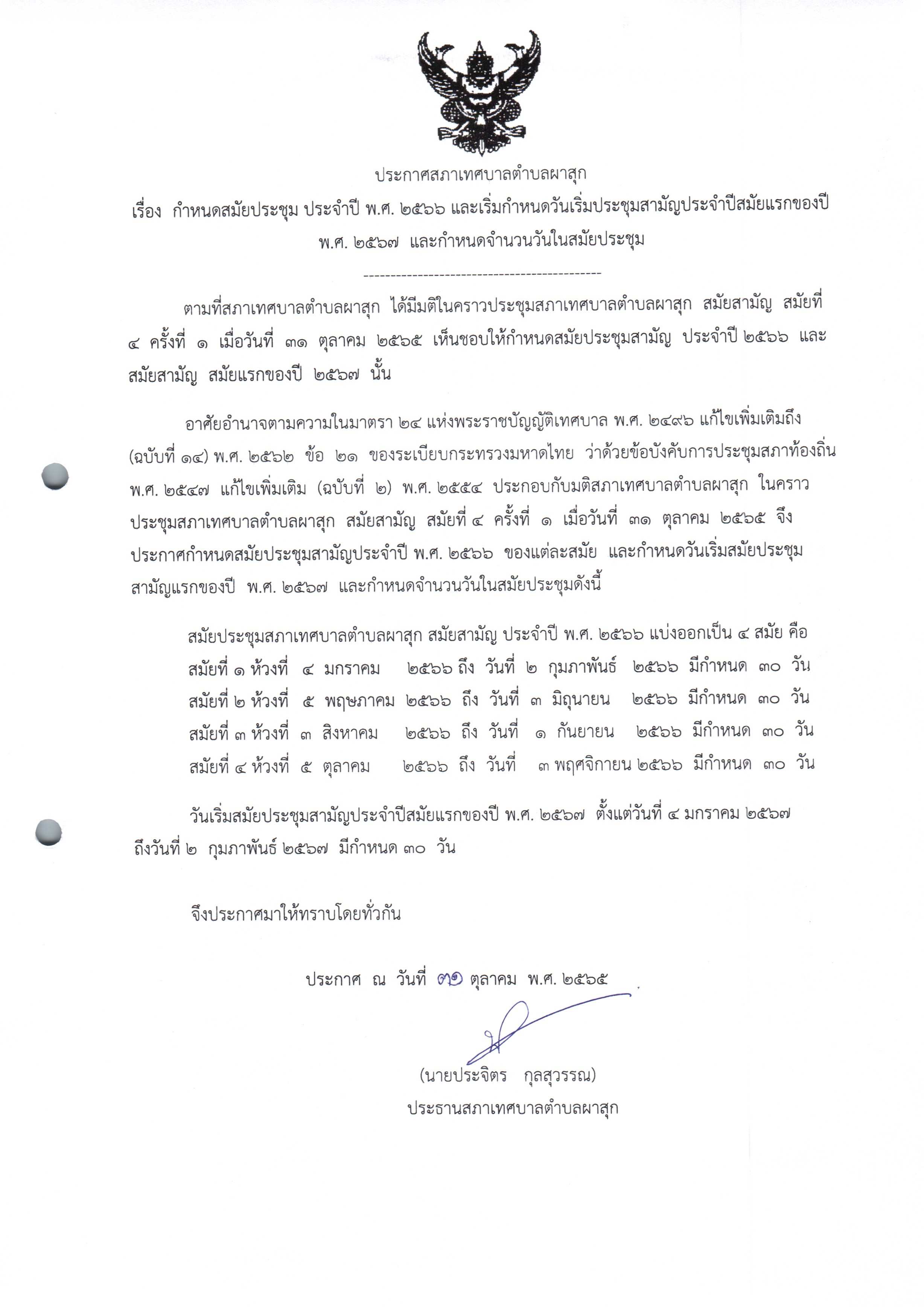 ประกาศ เรื่อง กำหนดสมัยประชุม ประจำปี พ.ศ. 2566