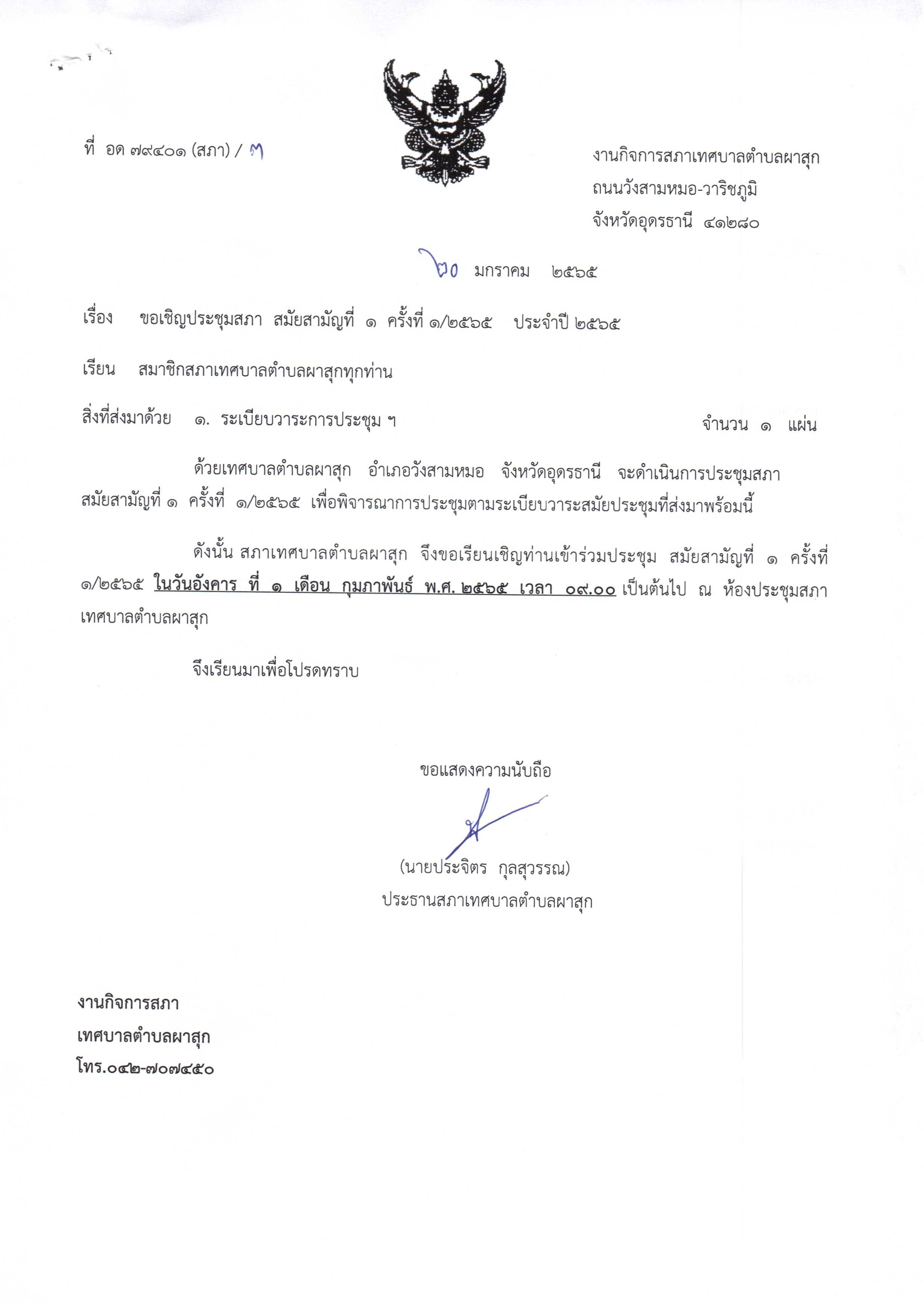 ประชุมสภา สมัยสามัญที่ 1 ครั้งที่ 1 ประจำ 2565