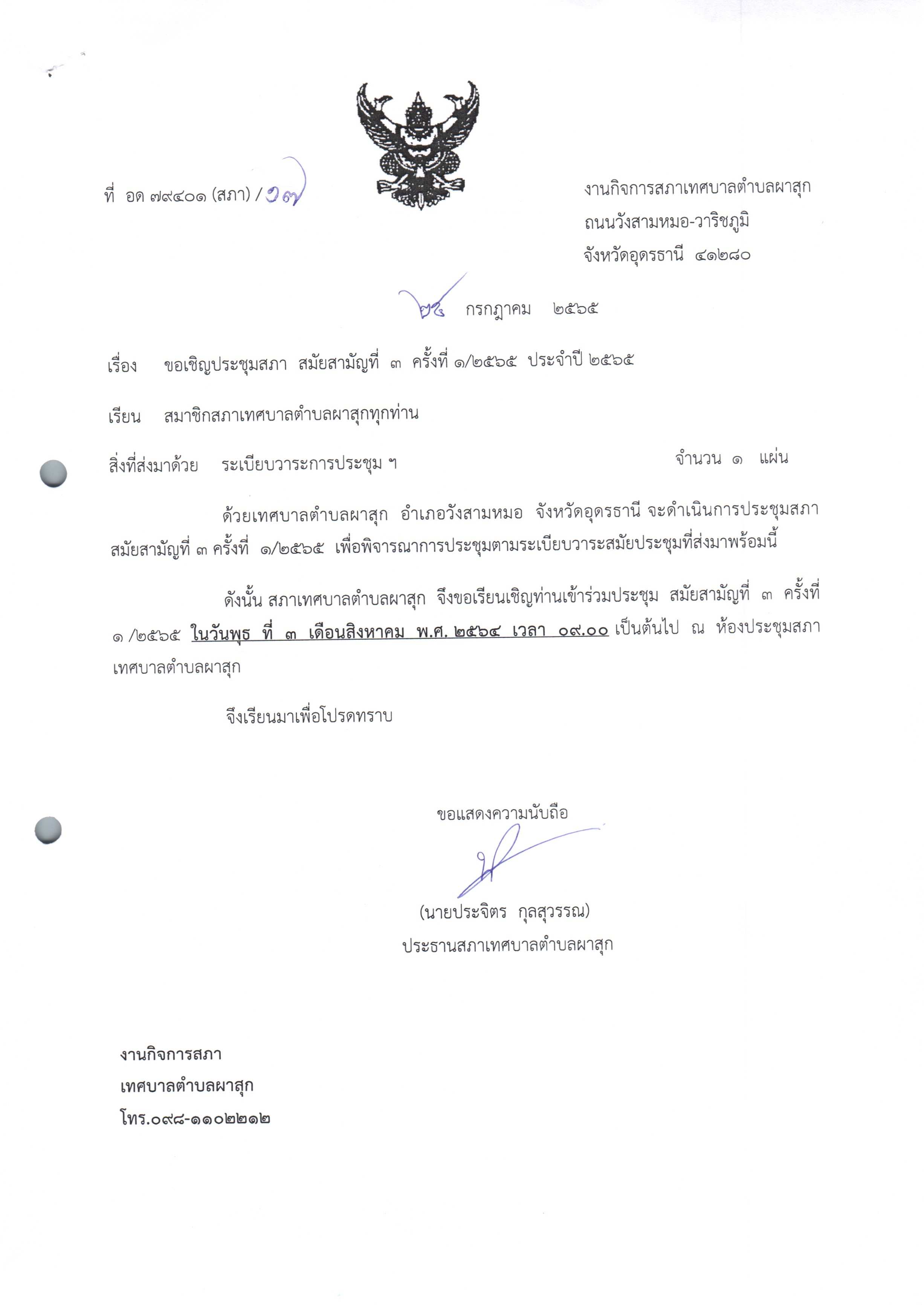ประชุมสภา สมัยสามัญที่ 3 ครั้งที่ 1 ประจำ 2565
